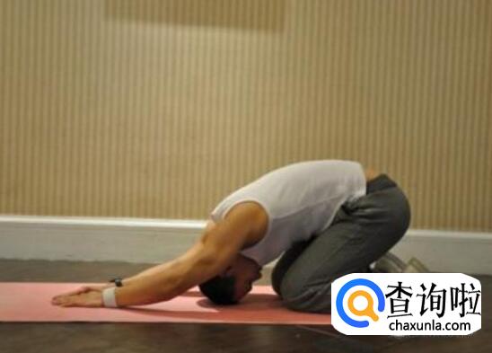 双膝跪于一块瑜伽垫上双手向前,弓背屈髋将头部尽量的靠近双膝直至竖脊肌有牵扯感保持15~30秒为宜。