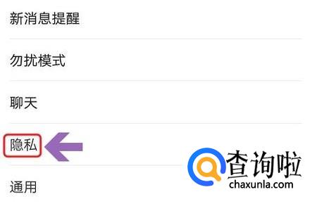 然后在设置页面中找到“隐私”这一项,点击以后就来到了隐私页面,如下图;