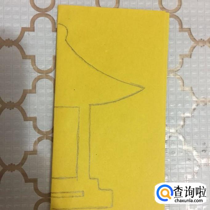 然后在折纸上画出亭子的轮廓,如下图所示。