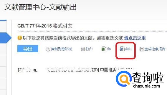 我们点击图中Word标志,该参考文献将生成标准格式,并以Word文档的格式保存,我们把它复制到论文中去就可以了(如果引用的参考文献多的话可以一起生成)。当然,该参考文献还缺引用的页码信息,需要手动添加,不过这样出错的可能性就很小了。
