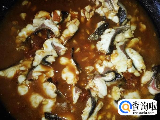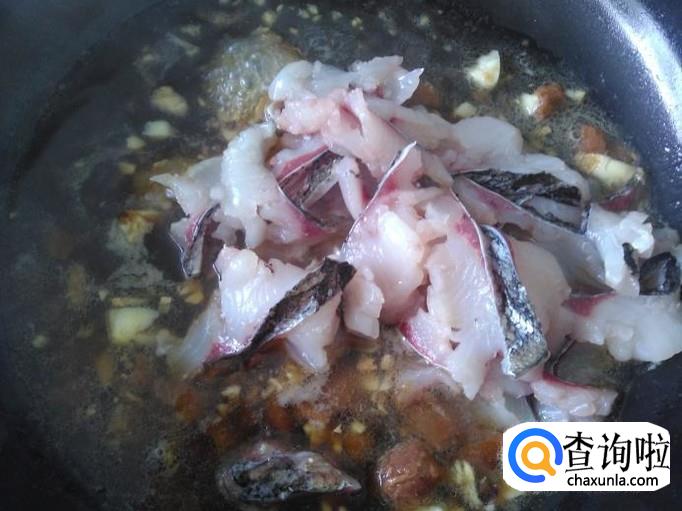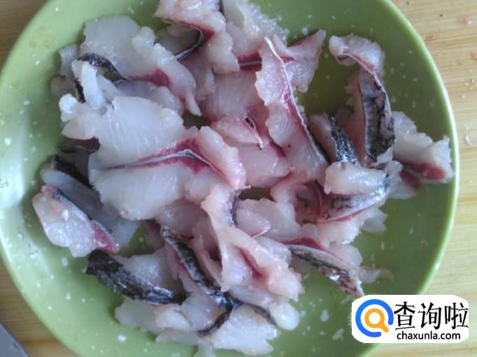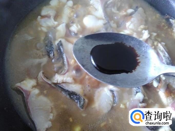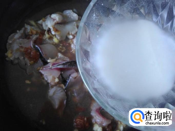 鱼片下锅,加适量的水淀粉、几滴老抽。