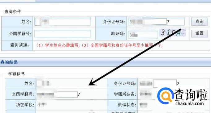 进入之后,输入学生的相关信息即可查询到学籍信息,如图所示。