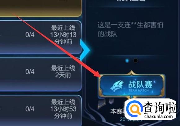 进入之后,点击“战队赛”,进入下一页面,如图所示。