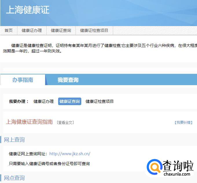 健康证网上查询网址:http://www.jkz.sh.cn/