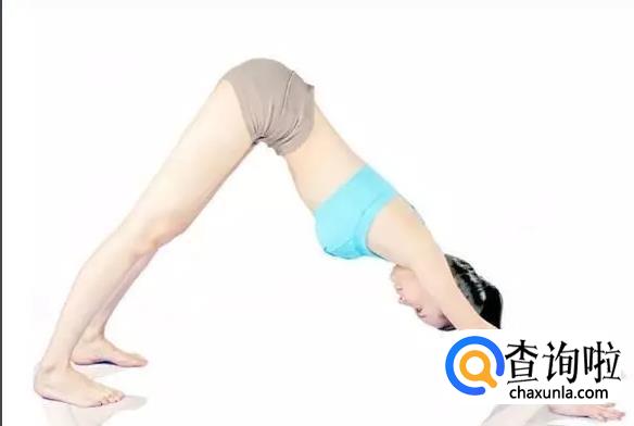 从跪立开始,双臂撑在肩膀前方,臀部尽量向上提起。吸气,两腿并拢,伸直双腿,并且尽可能伸直双手臂;吐气,脚跟和肩膀下压,背部保持撑直,保持深呼吸8次。