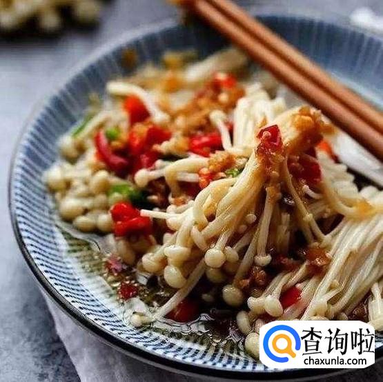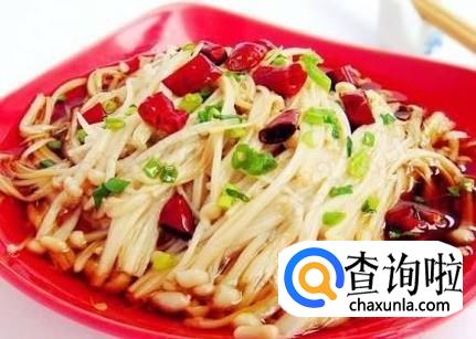 取适量葱洗净切末,红辣椒用清水洗净切好,放入金针菇盘中,加入适量食盐,适量生抽,适量香醋,适量香油和味精,搅拌均匀就可以了。