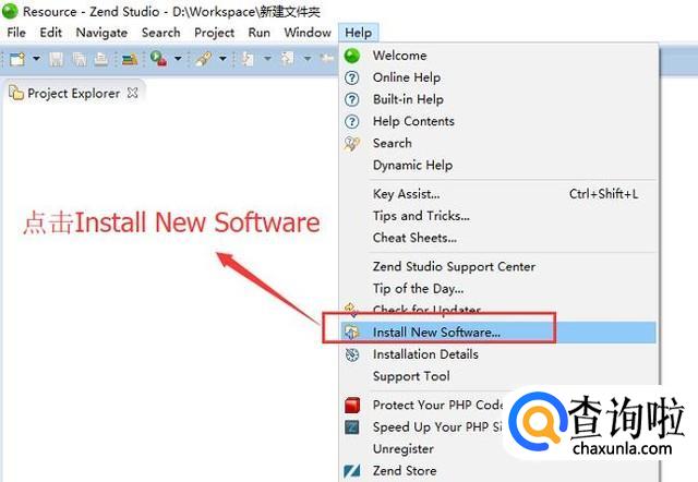 然后点击顶部的Help菜单,在下拉菜单中选择Install New Software选项,如下图所示