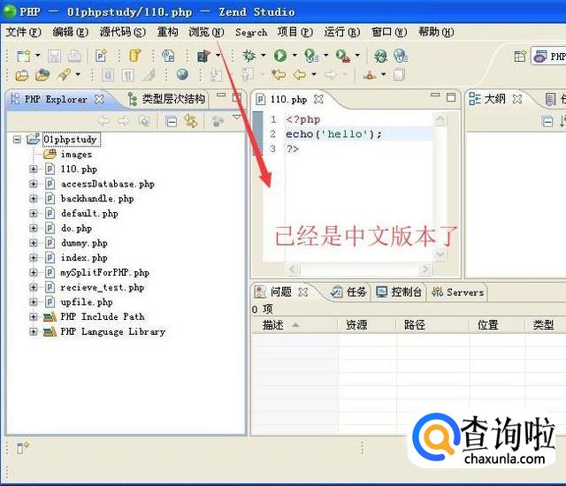 最后重新进入Zend Studio界面,我们就可以看到顶部的菜单栏都是中文了,这代表当前已经切换到中文环境了,如下图所示