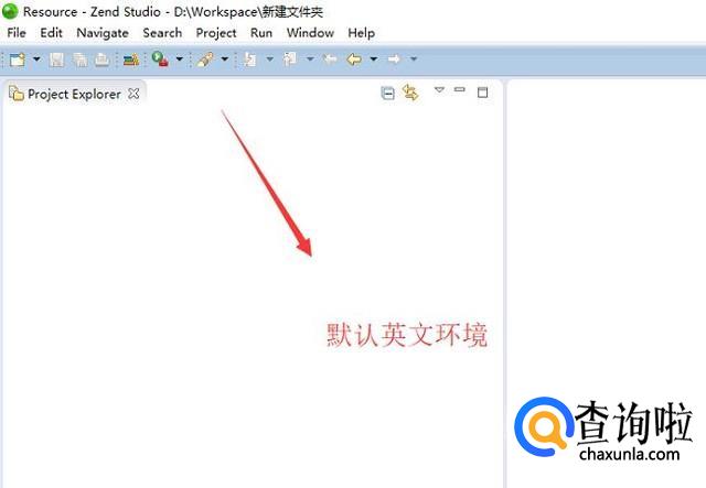 首先我们打开Zend Studio软件,你会看到顶部的菜单栏都是英文的,这代表当前的语言环境是英文,如下图所示