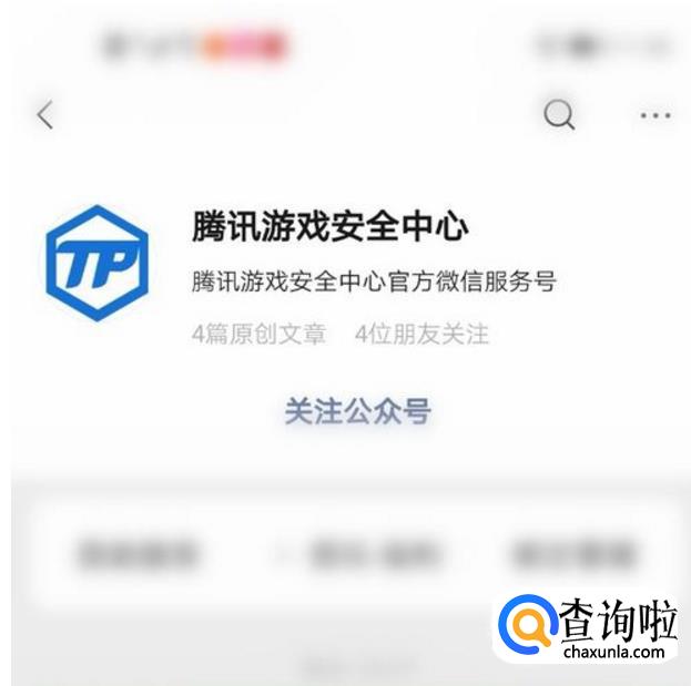 搜索“腾讯游戏安全中心”,出现“腾讯游戏安全中心”公众号页面后我们点击“关注”该公众号。