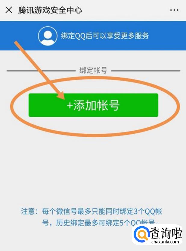 之后在“腾讯游戏安全中心”页面有个“+添加账号”按键,我们点击此按键。