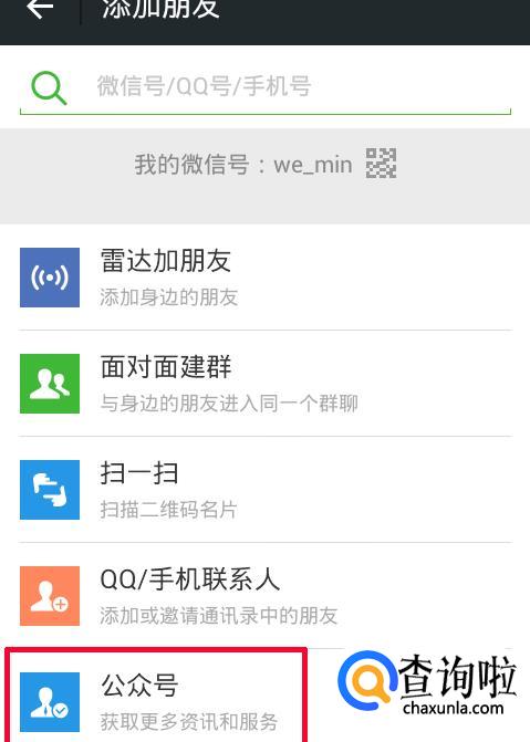 首先找到微信的公众号搜索,