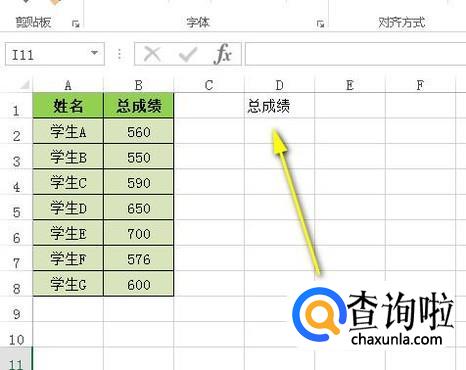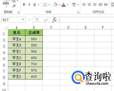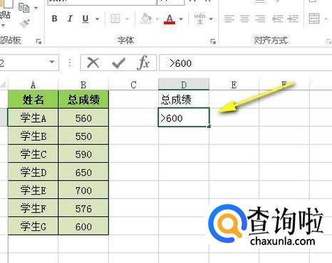 以下图数据为例演示使用方法。假设,要统计总成绩大于600的人数。