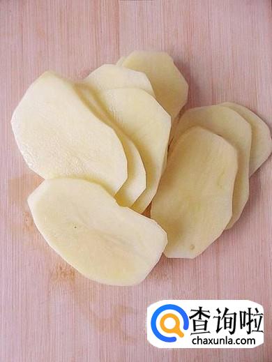 准备大白菜和土豆,洗净,将土豆切片,白菜切成条状,还可以准备一些葱花备用。