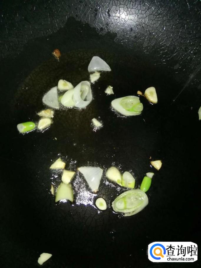 开火,加入适量的食用油,油热后将火调为中火,下大葱和蒜头入锅里,炒香;
