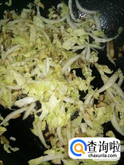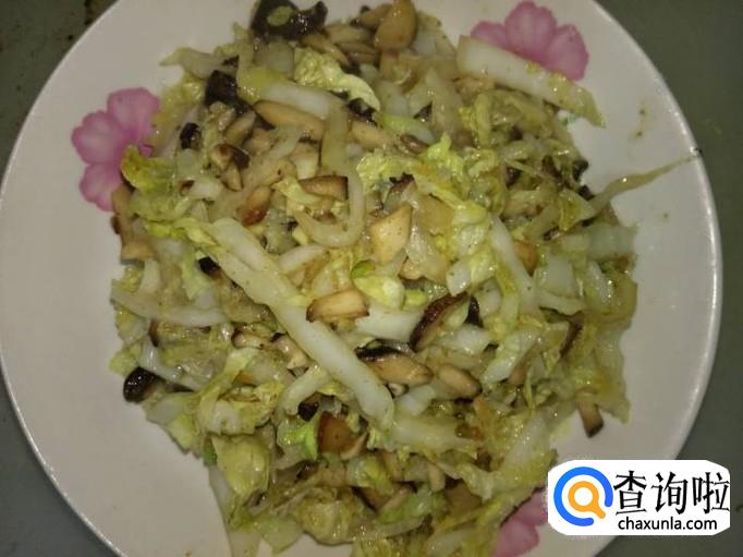 加入适量的盐、鸡精、孜然粉,翻炒至熟,即可,孜然味的香菇炒娃娃菜就完成了!