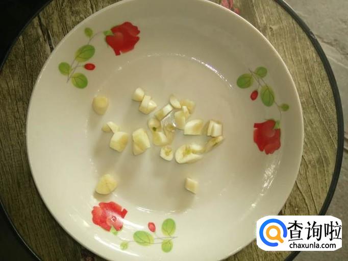取两三个蒜头,将蒜头外膜剥掉,洗净,切成碎块;