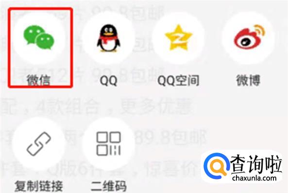 选择“微信”,即可把链接分享到微信。如图所示。