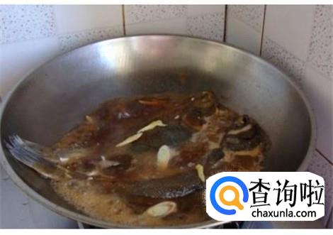 将腌制鱼的汤汁倒进去,加上一点清水,然后盖上盖子大火烧开,小火炖,汤汁减少的时候撒点味素和香菜就可以出锅了。