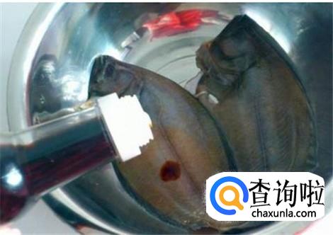 一勺生抽、半勺料酒、一勺白糖和一勺食盐倒进偏口鱼里面腌制,大概十几分钟就可以。