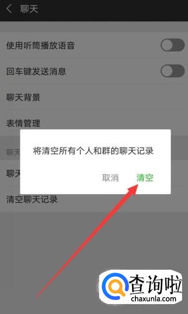 进入之后,找到“清空聊天记录”,点击一下,如图所示。