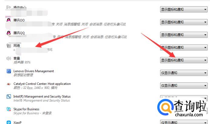 然后选择任务栏上出现的图标和通知下面找到网络再选择显示图标和通知。最后点击确定。