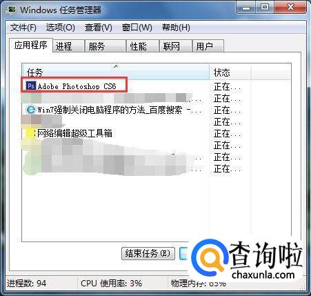 在应用程序中看到正在运行的程序,找到需要强制关闭的程序,选中它。