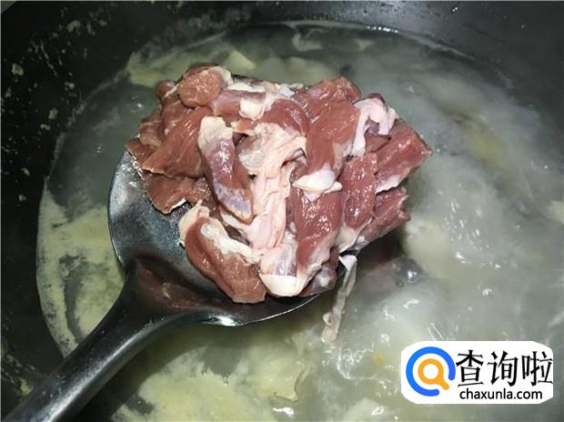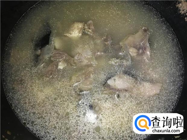 把鱼头汤煮到沸腾后,再加入瘦肉,盖上锅盖,继续煮。