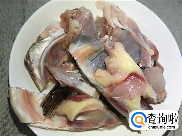 鱼头切成小块,清洗干净,沥干水分备用。鱼头里面也是有尘土的哦,靠近鱼鳃的位置,尘土已经要清洗干净,把鱼鳃给弄干净。