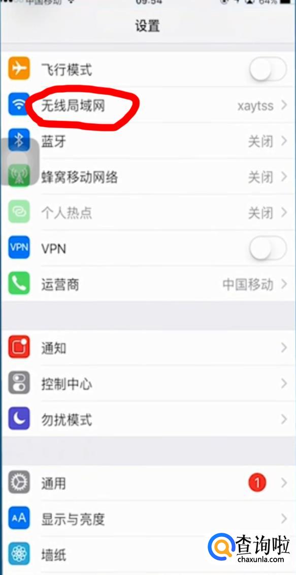 点击进入手机设置,再点击无线局域网。如下图所示。