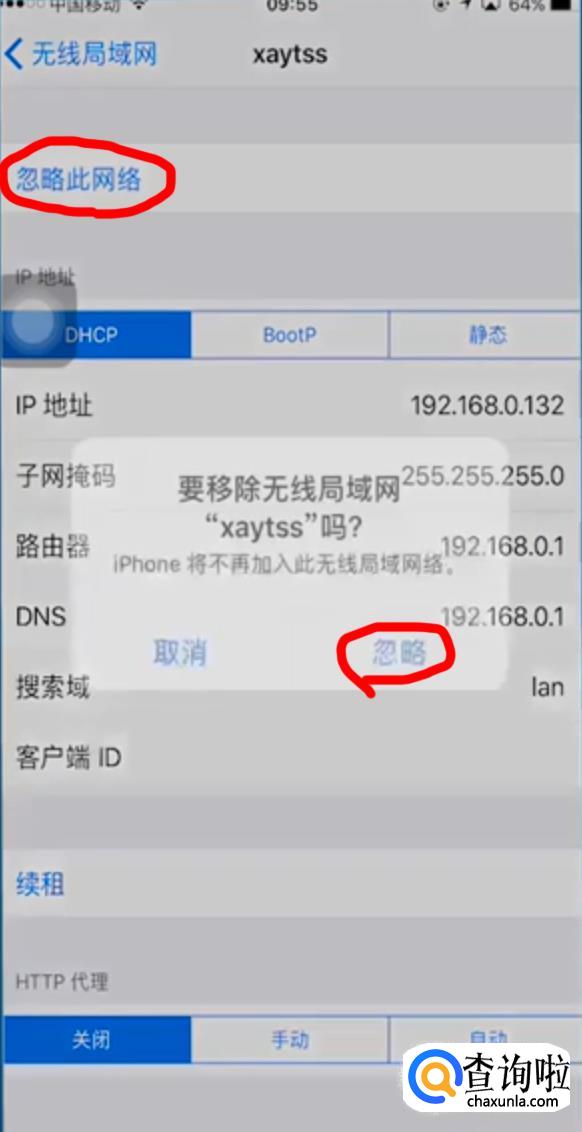 点击忽略此网络,确定忽略,再重新连接。