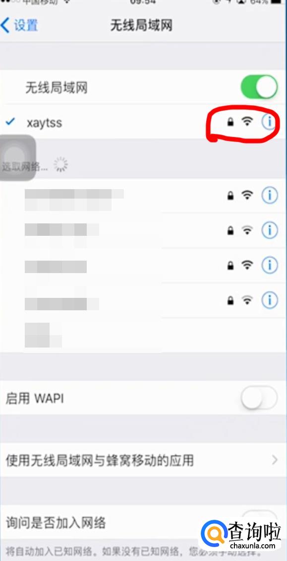 同样进入已经连接wifi的窗口,点击已经连接的wifi最右边的蓝色标志。