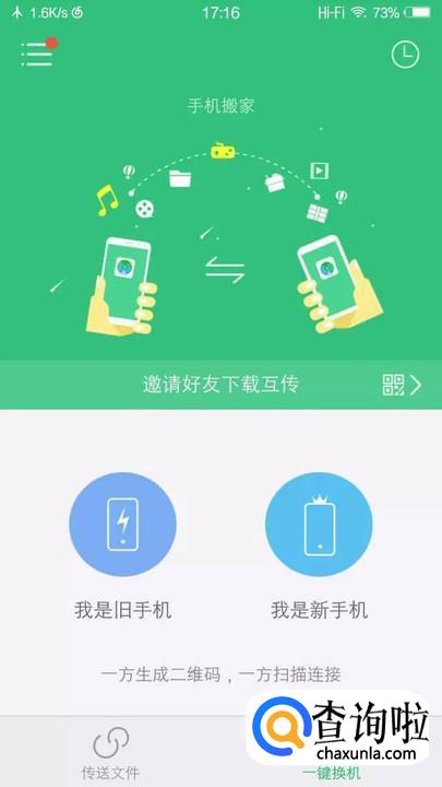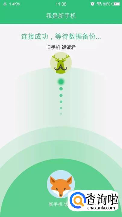 在原来的手机上选择“我是旧手机”,在新手机上选择“我是新手机”。原来的手机上就会显示二维码,用新手机扫描二维码即可,几秒后就会连接成功。