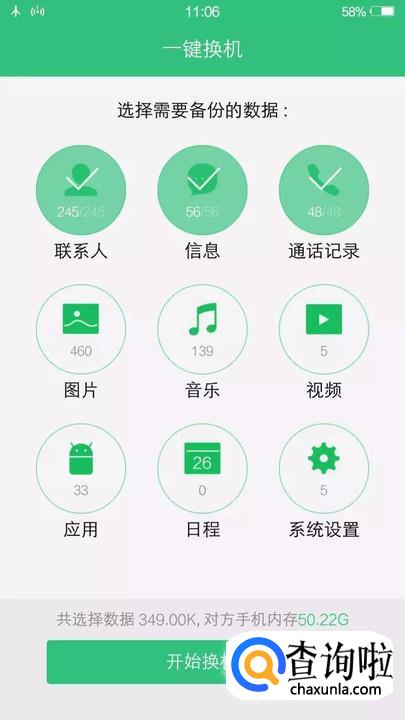 在原来的手机上勾选需要传送到新手机上的内容,一次勾选传送,点击“开始换机”。