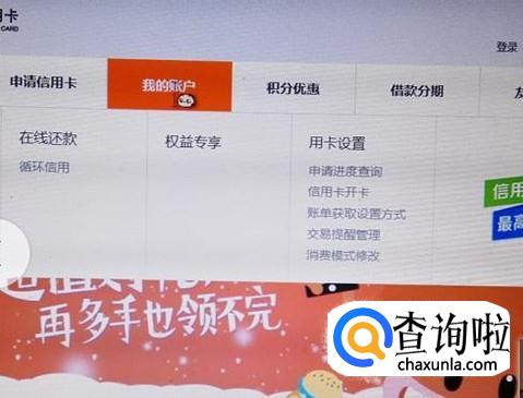 然后在界面上方找到我的账户,在我的账户里面找到信用卡开卡,点击进入