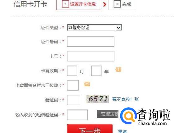 在跳出的页面上会出现激活信用卡的流程,按照要求输入信息