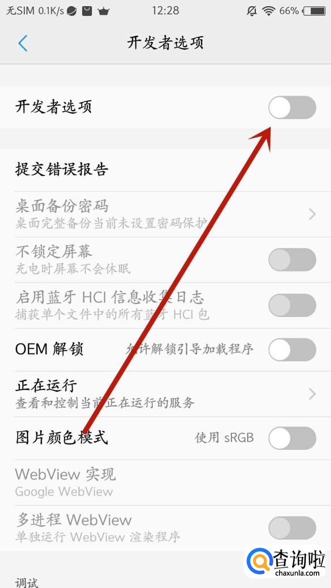 进入之后,点击“开发者选项”开关,如图所示。