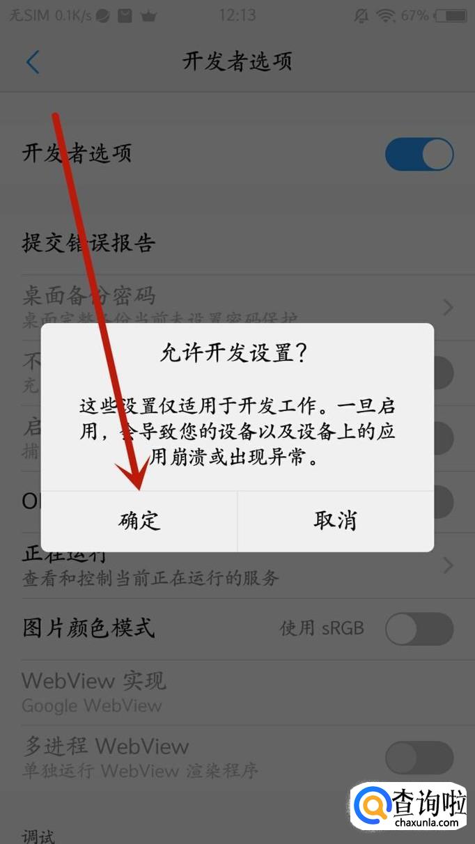 在出现的弹窗内点击“确定”即打开开发者选项