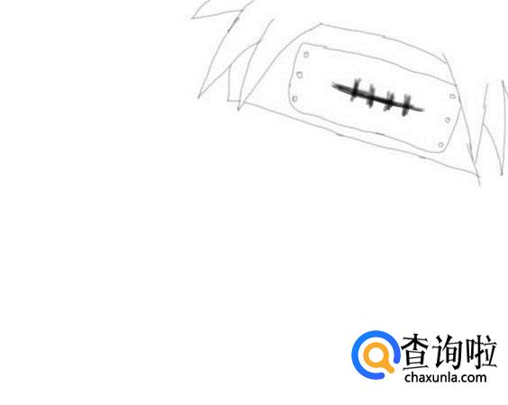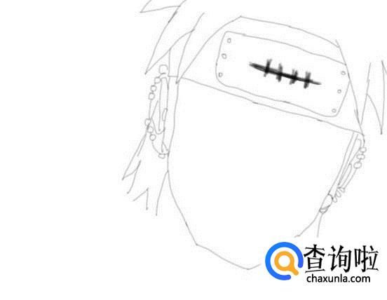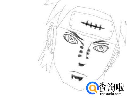 首先画出佩恩的头发造型,然后在头发上再画出佩恩头部上的装备,如图所示:
