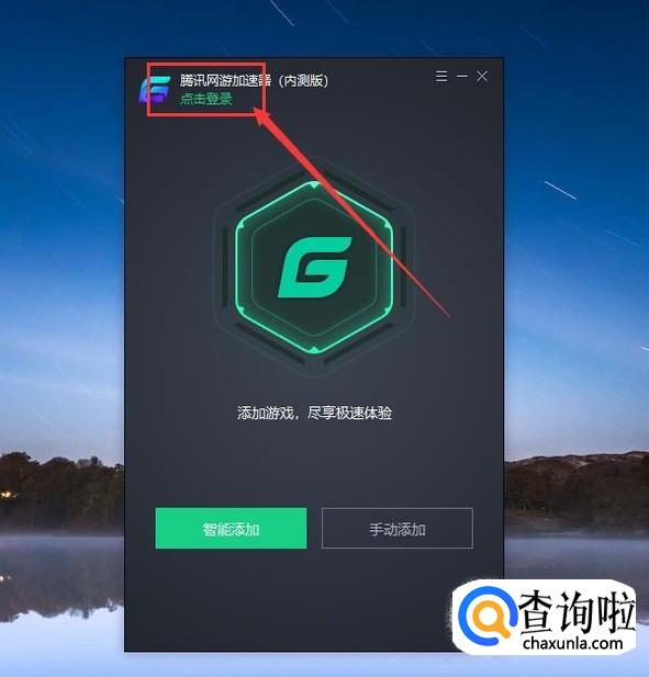 首先,请在电脑上安装好腾讯网游加速器加速器软件,然后点击软件主页面上的“登录”按钮。