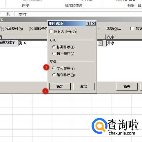 调出排序选项面板,点选:字母排序;再点确定