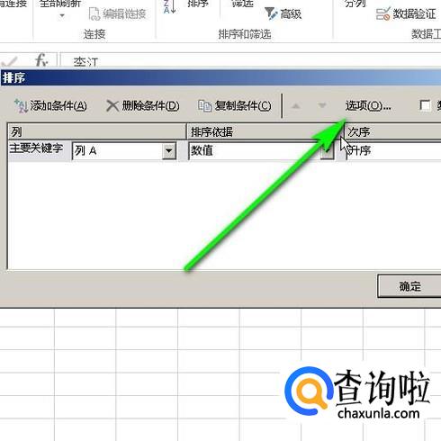调出了排序的面板,再点击:选项