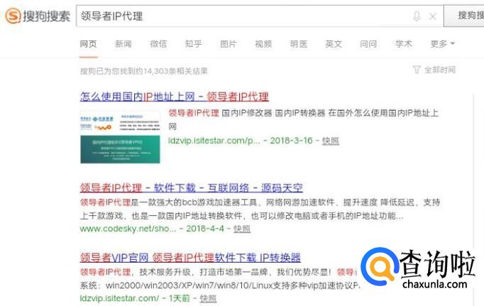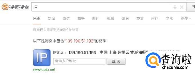 那么怎么看自己的IP已经改变了呢,我们用搜狗搜索一下 IP 就会显示当前的IP地址,我们试试 打开搜狗 搜索。IP ,搜索 自己的已经显示上海的了。