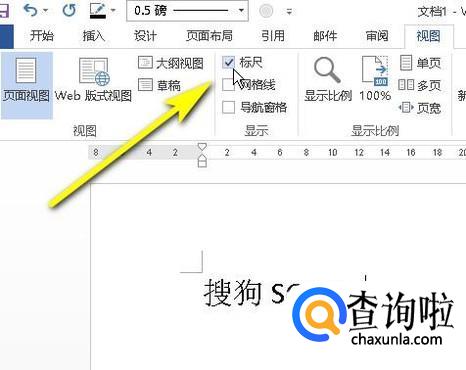 鼠标点击视图选项卡,从中选择“标尺”;把标尺调出来。
