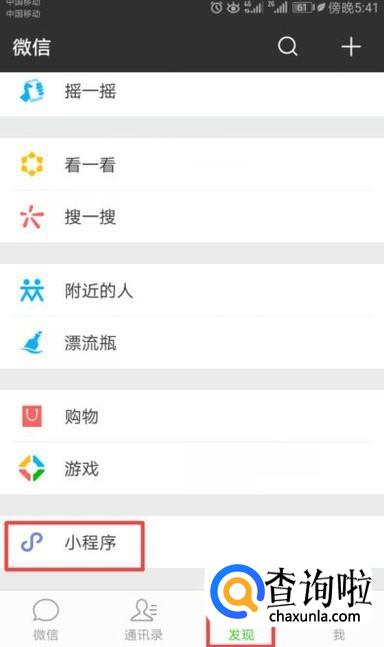 首先,我们打开我们的微信,然后我们点击发现,之后我们点击小程序;
