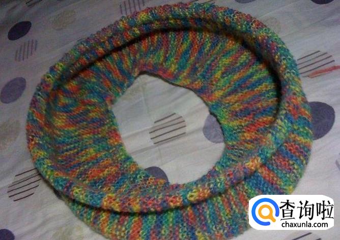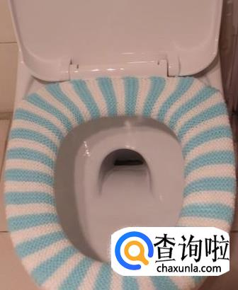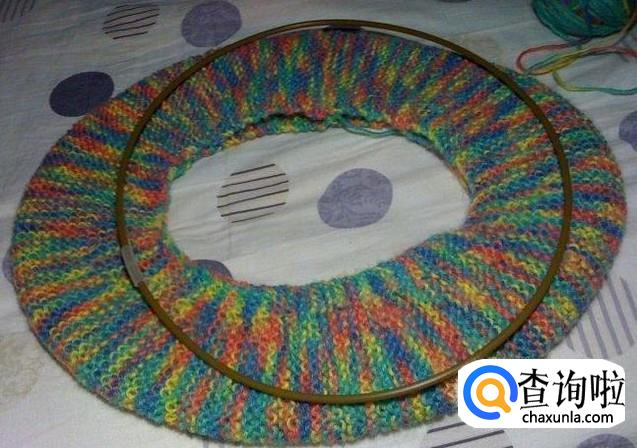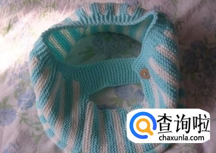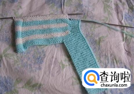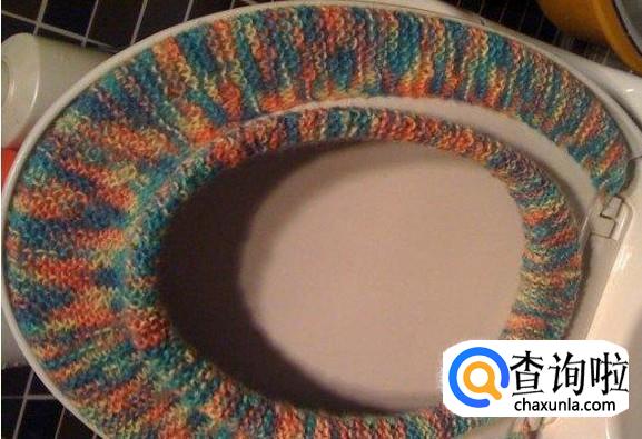 从B侧每6行蓝白相间的宽带子织35针,与另外一侧重合,这时马桶套就成了一个闭合圆圈。