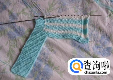假设带子短的一侧为A侧,长的一侧称为B侧,在A侧加28针,就是40针,织搓板针6行下来,单留1针上针与搓板针分界。
