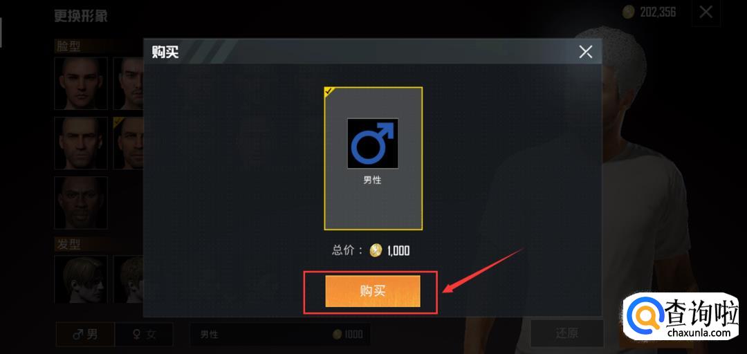 接着会弹出“购买”窗口,提示你更改性别的话需要消耗1000金币,如果你确定购买,点击【购买】按钮即可。