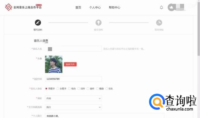 填写完音乐人信息之后,点击提交,官方会对此进行审核。如果审核没过,官方会给出原因,自己再将其修改提交审核即可。此过程大概在一个工作日即可完成。