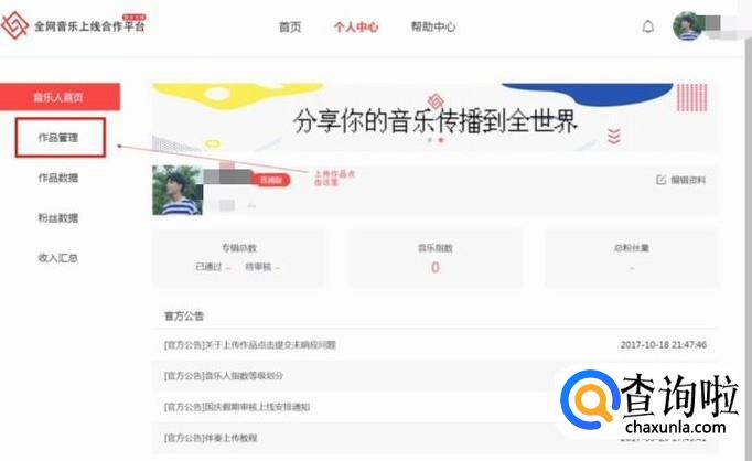 审核信息过了之后,就正式完成注册。在主页面会有一些新手的攻略,可点击查看。想要上传作品,点击“作品管理”就可以开始上传作品。